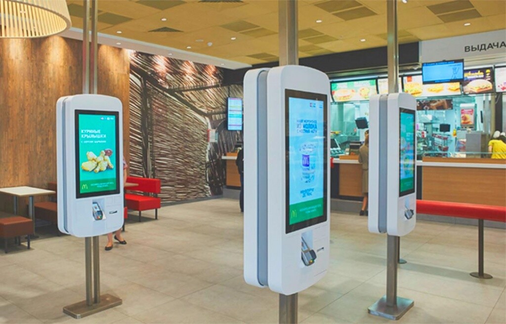 быстрый прием заказов без очередей, сокращение затрат на персонал, дополнительная рекламная площадка